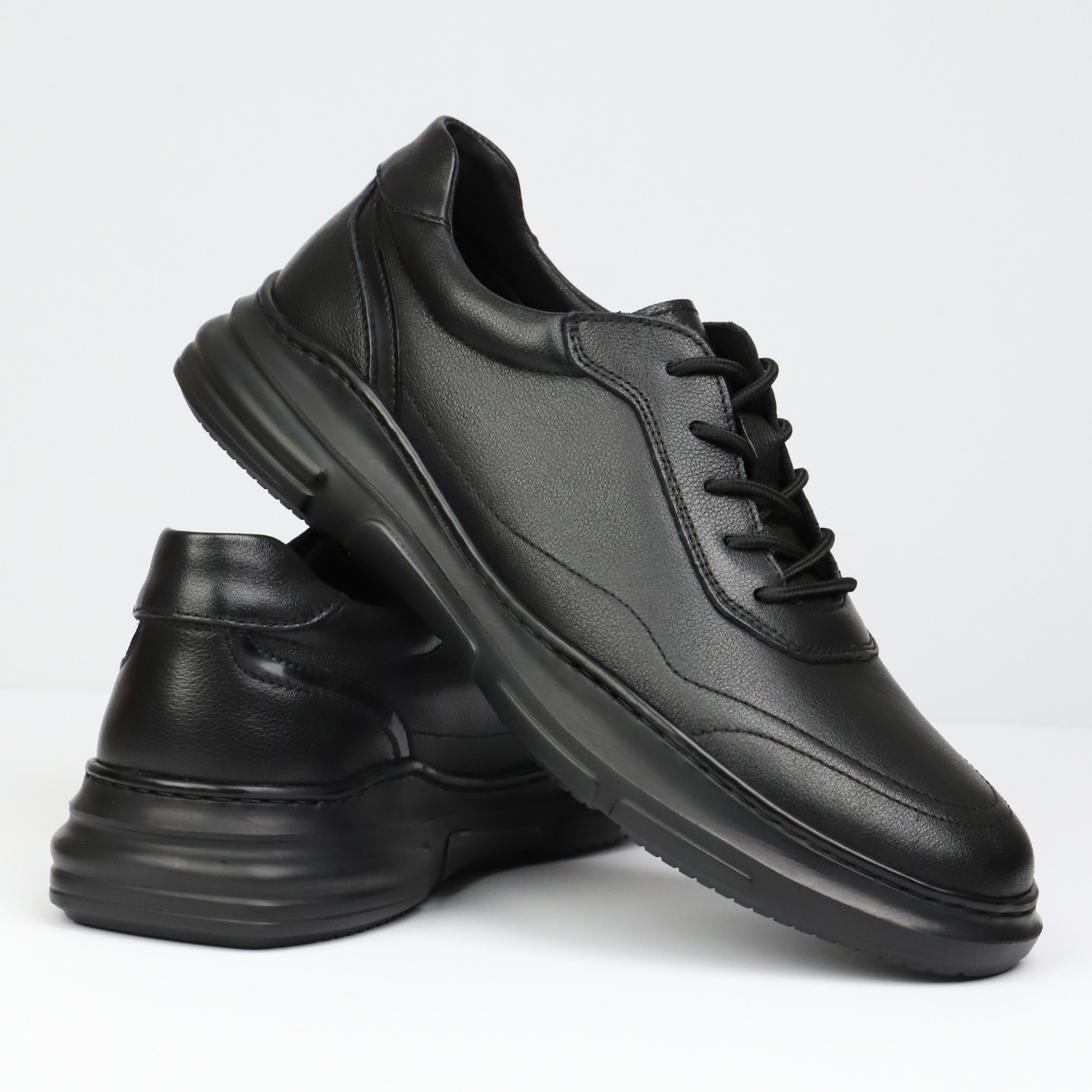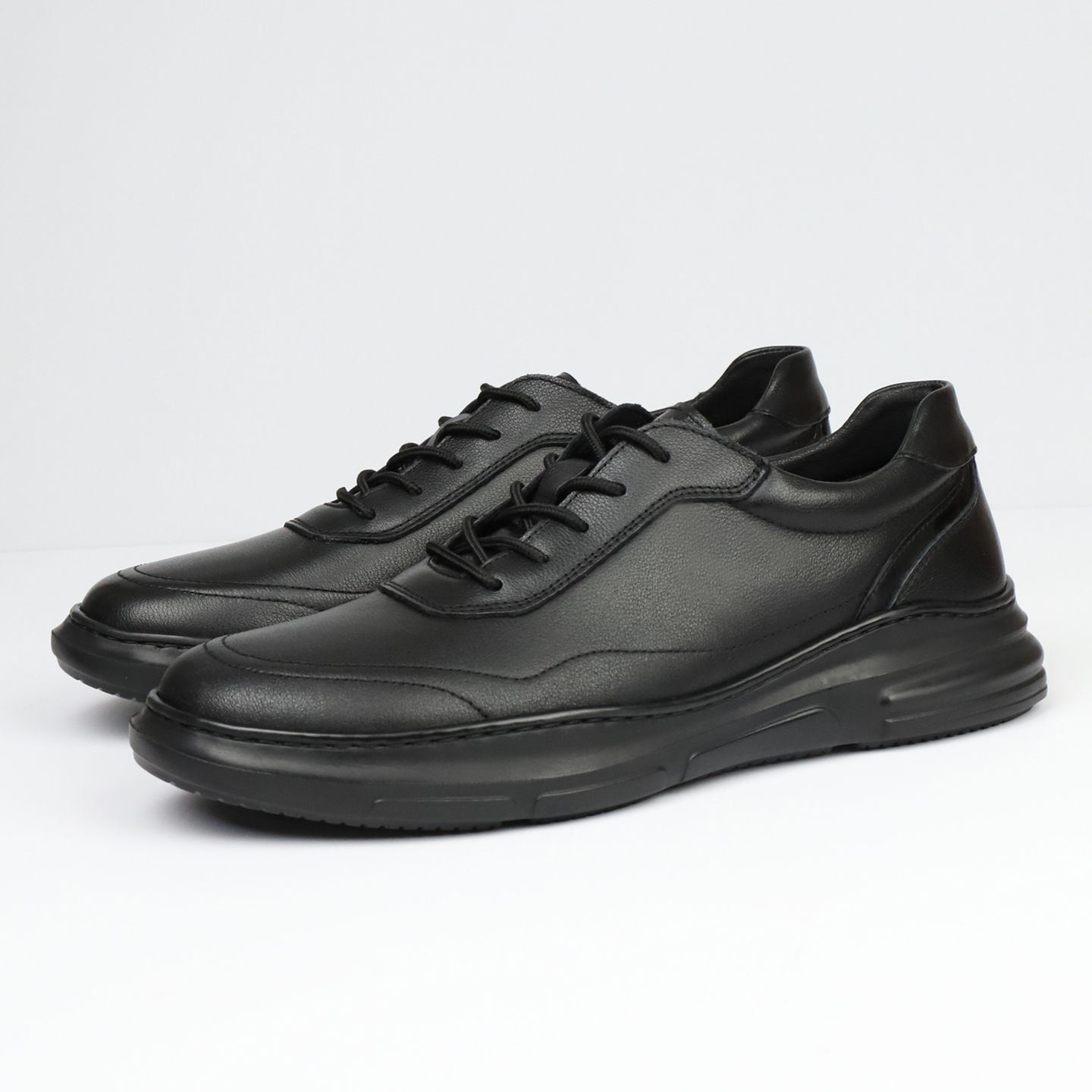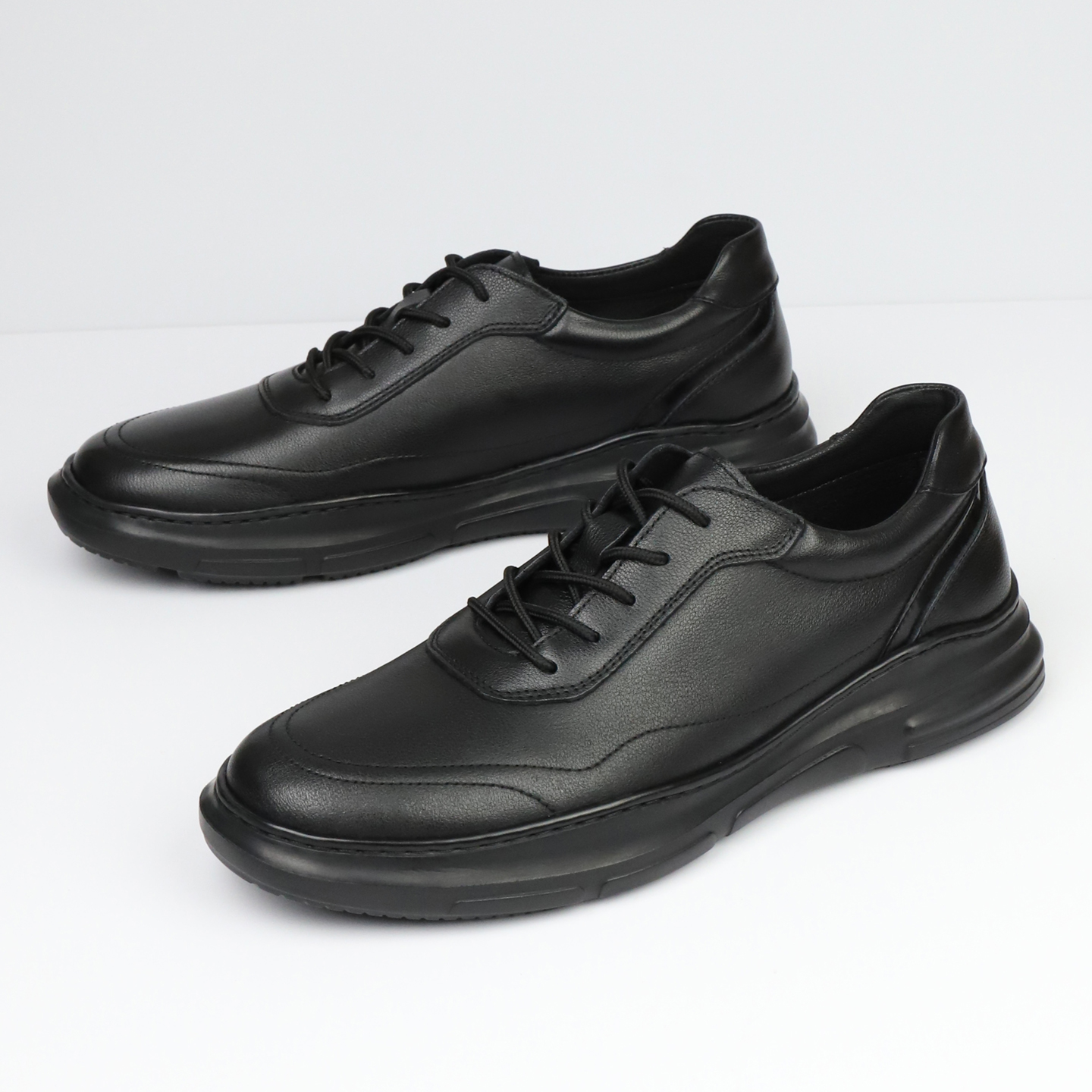 SDEP秋季 头层牛皮软皮软底实心圆头厚底轻便半胶车线运动休闲皮鞋