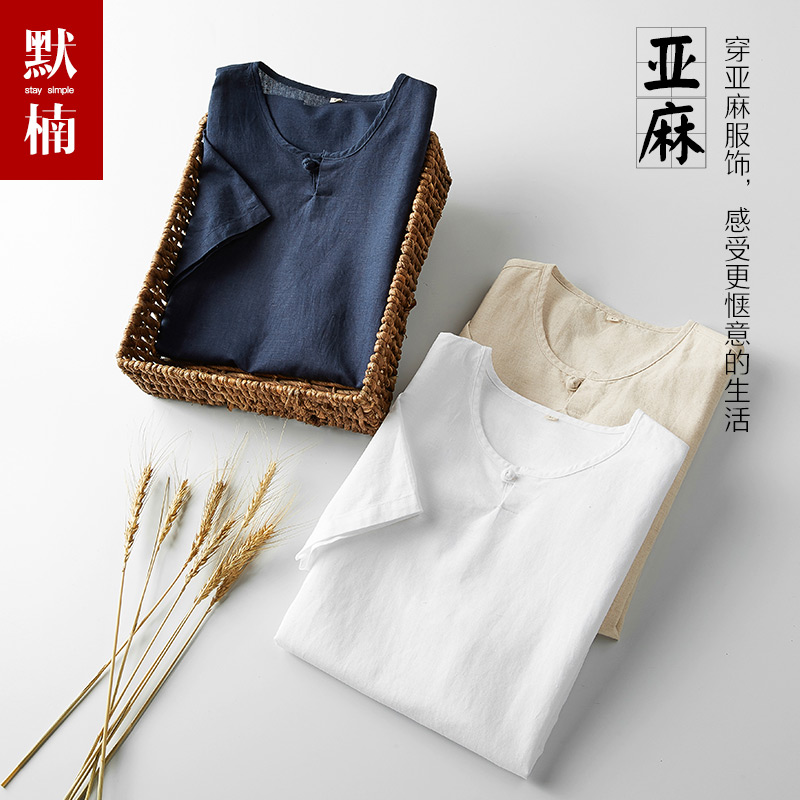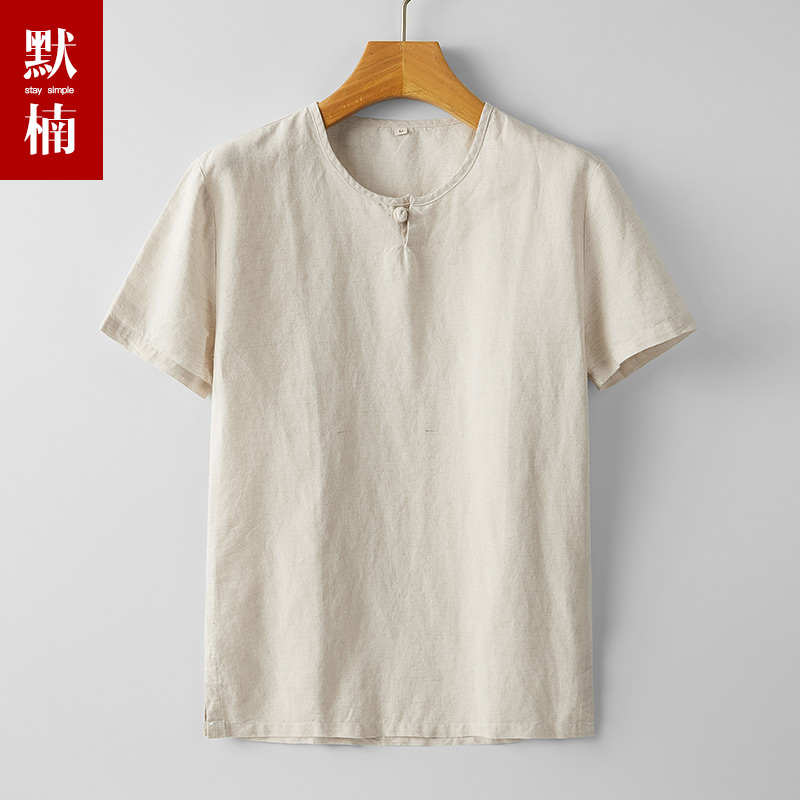 复古盘扣圆领男士 亚麻短袖 中国风男装 薄款 棉麻体恤上衣 T恤男夏季