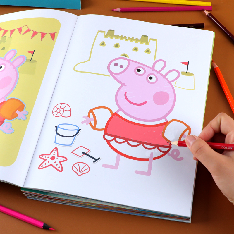 小猪佩奇涂色画画本儿童益智启蒙简笔描画书幼儿园填色涂鸦图画本