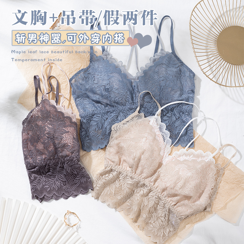 假两件蕾丝美背吊带背心网红爆款 抹胸内搭外穿裹胸学生高中带胸垫