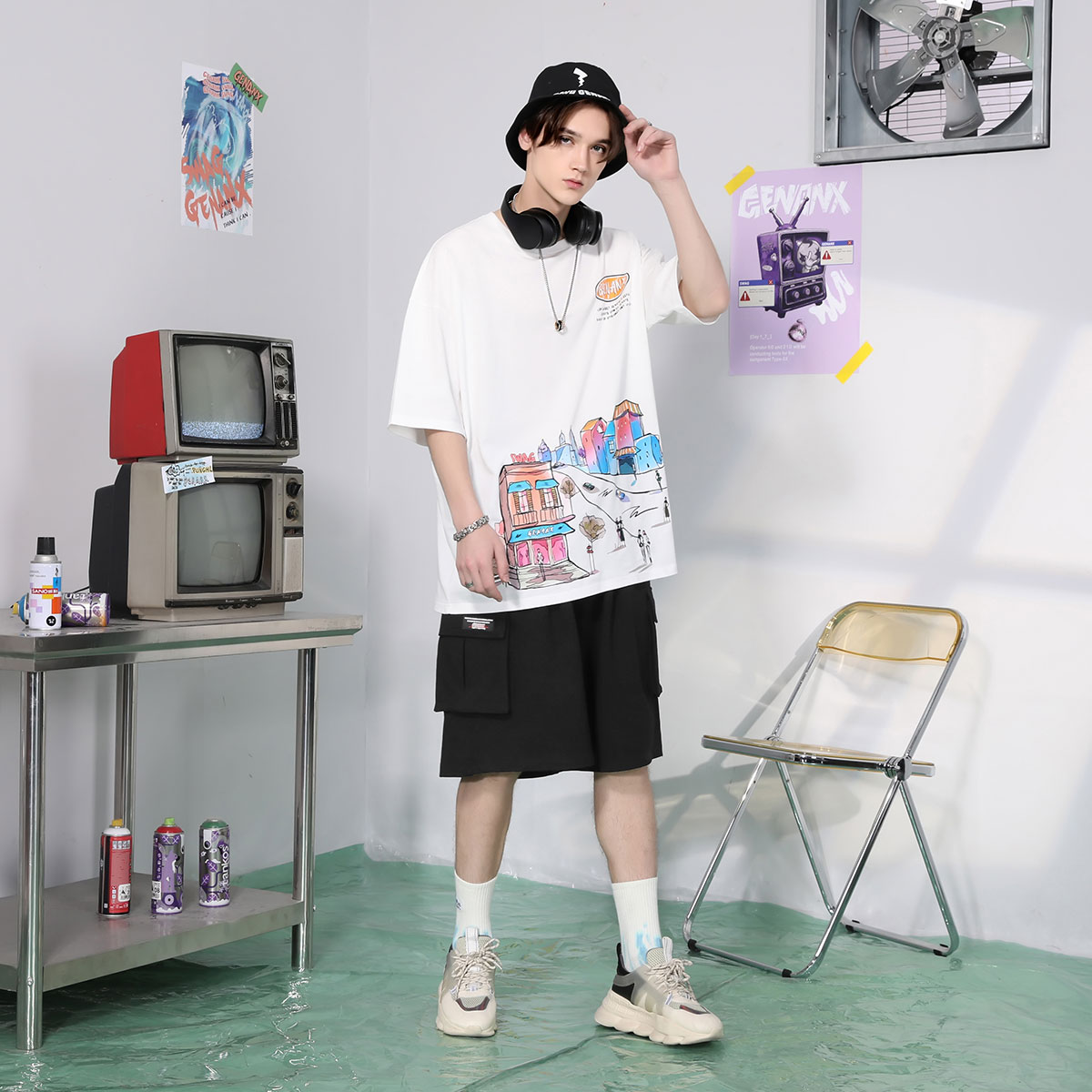 男夏季 高街oversize五分裤 新款 子潮牌美式 港风休闲宽松运动裤 短裤