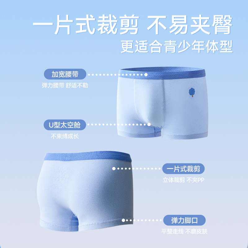 2025新款 男式 平角裤 有棵树男士 衩男款 纯棉抗菌四角裤 男生短裤 内裤