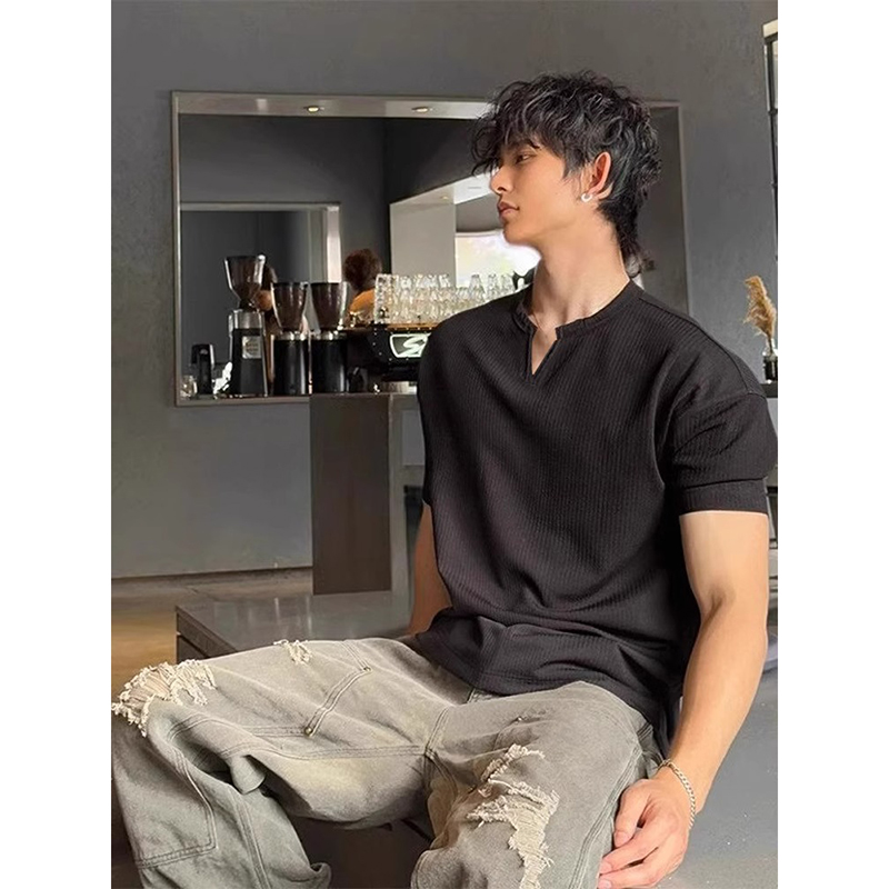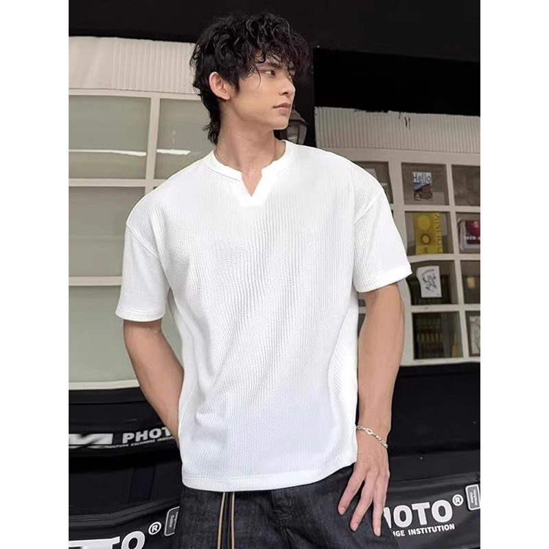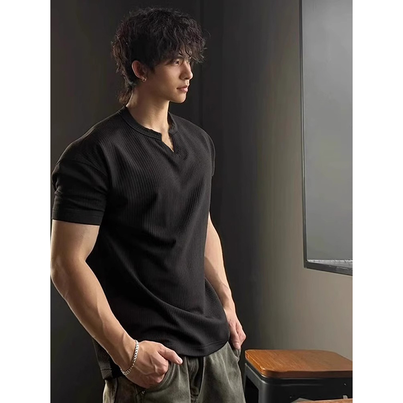 正肩速干半袖 肌理感v领冰丝短袖 口t恤美式 早秋健身显肌肉收袖 男款