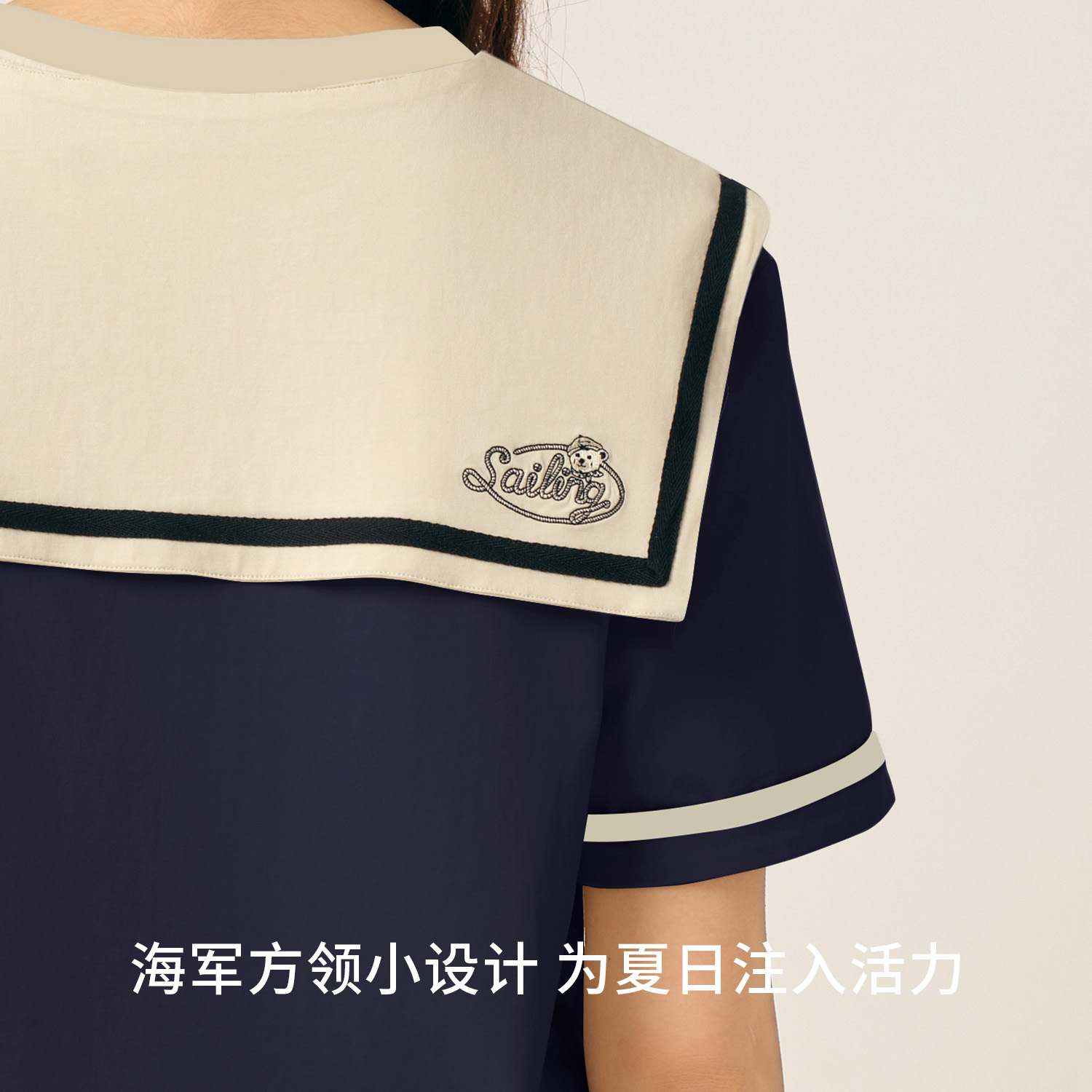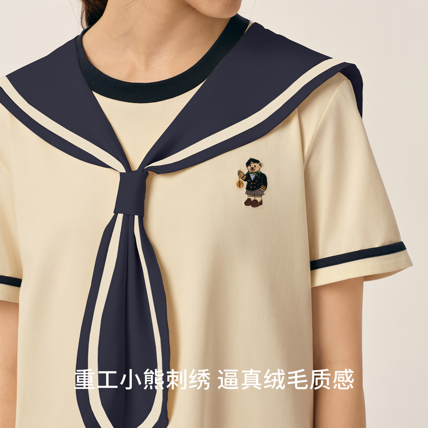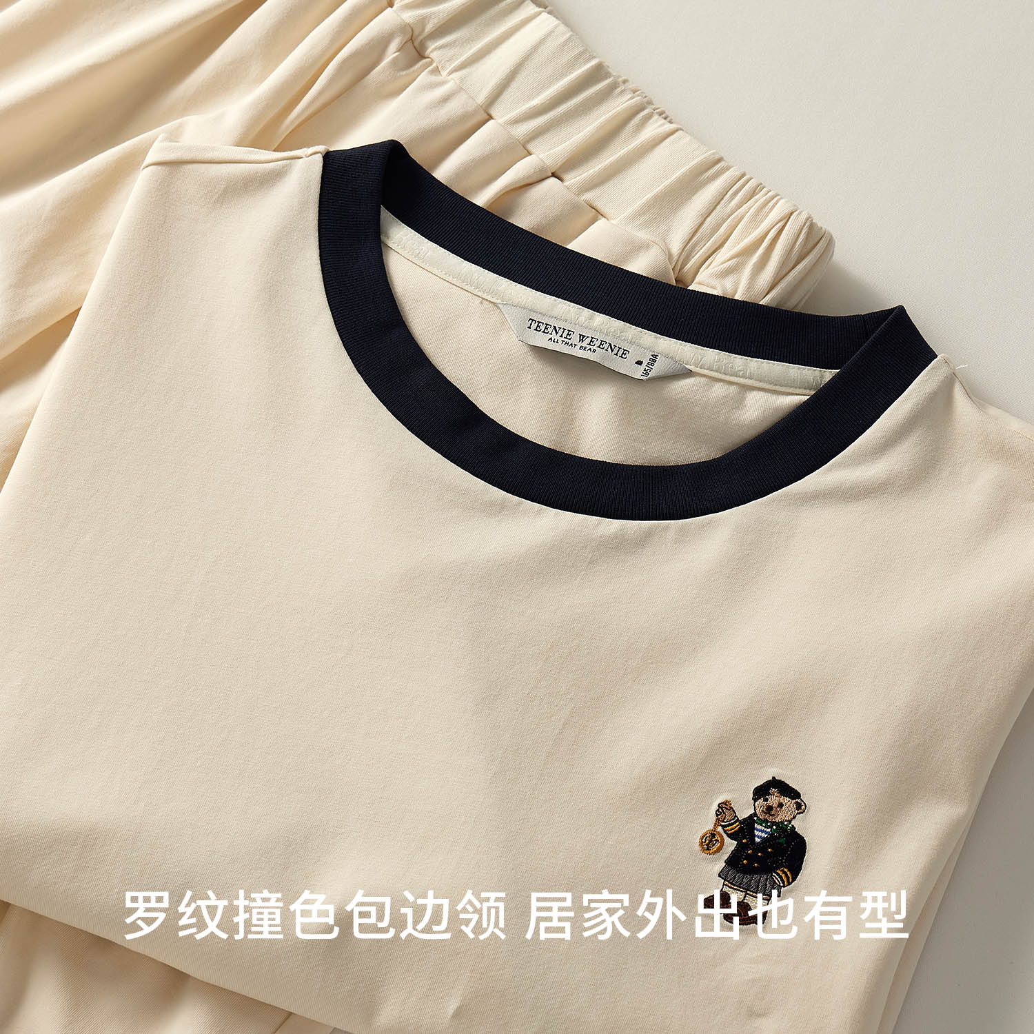 TeenieWeenie小熊睡衣女2025新款 夏纯棉舒适透气海军风家居服套装