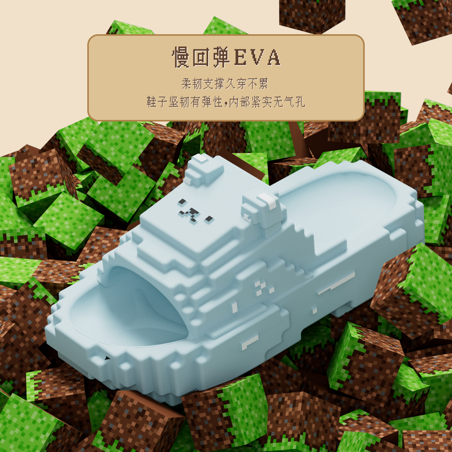 厚底踩屎感卡通凉拖鞋 新款 EVA防滑洗澡拖 女夏季 积木像素小熊拖鞋