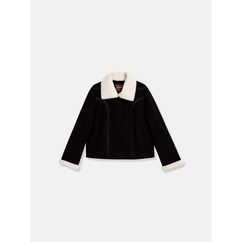 HM女装 立领宽松毛茸宽松附侧唇袋短大衣1248383 毛呢外套冬季
