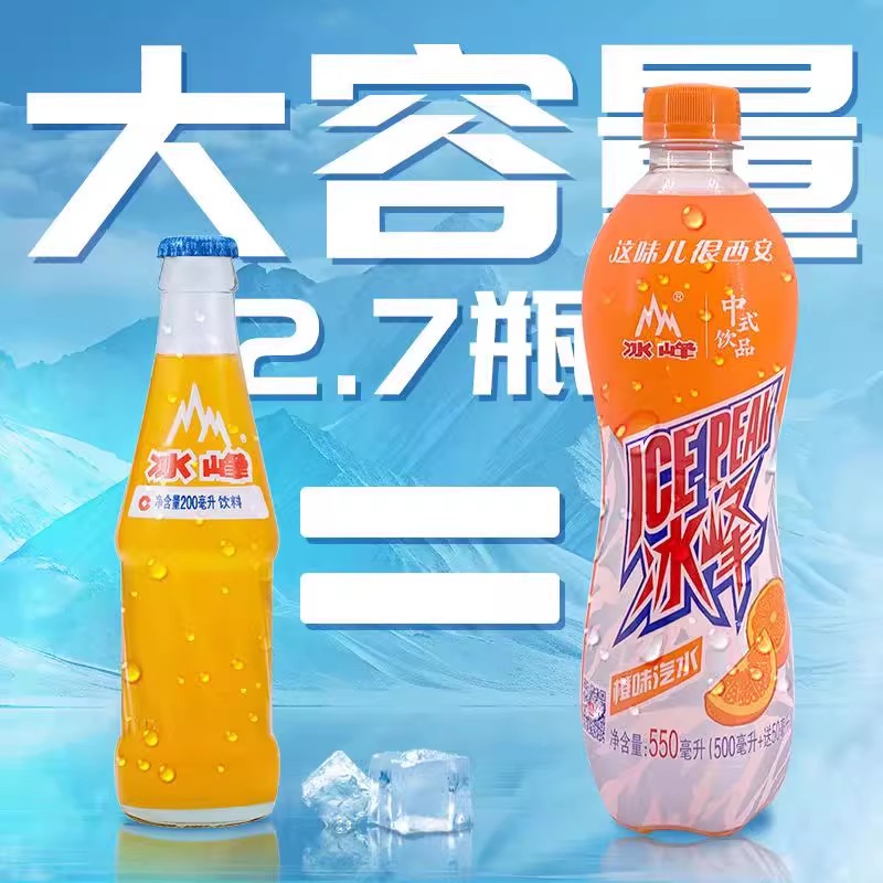 陕西特产冰峰橙味汽水550ml散装 3瓶西安网红碳酸饮料