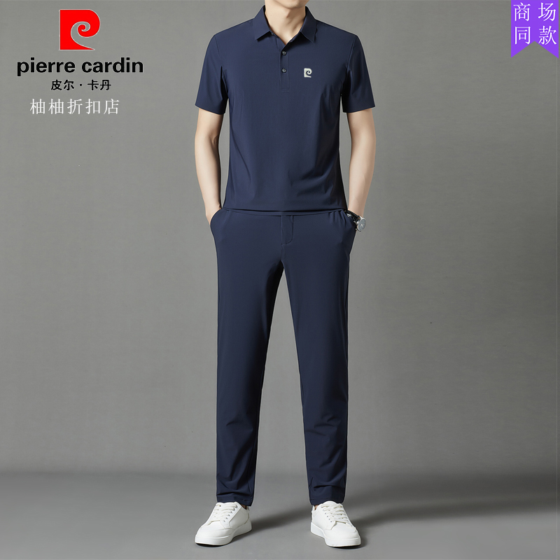 t恤夏季 短袖 薄款 长裤 两件套 皮尔卡丹休闲运动套装 弹力polo衫 男士