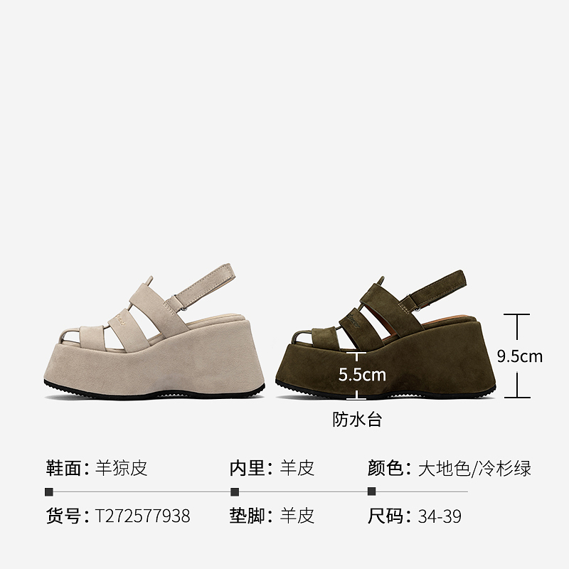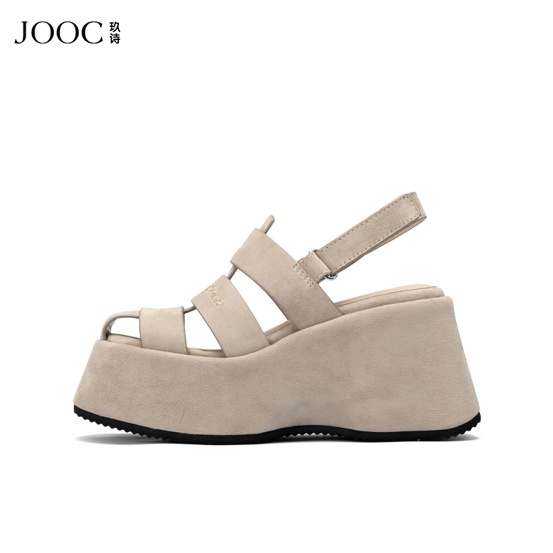 新款 2025夏季 JOOC玖诗镂空罗马凉鞋 纯色高跟沙滩凉鞋 柔光滤镜