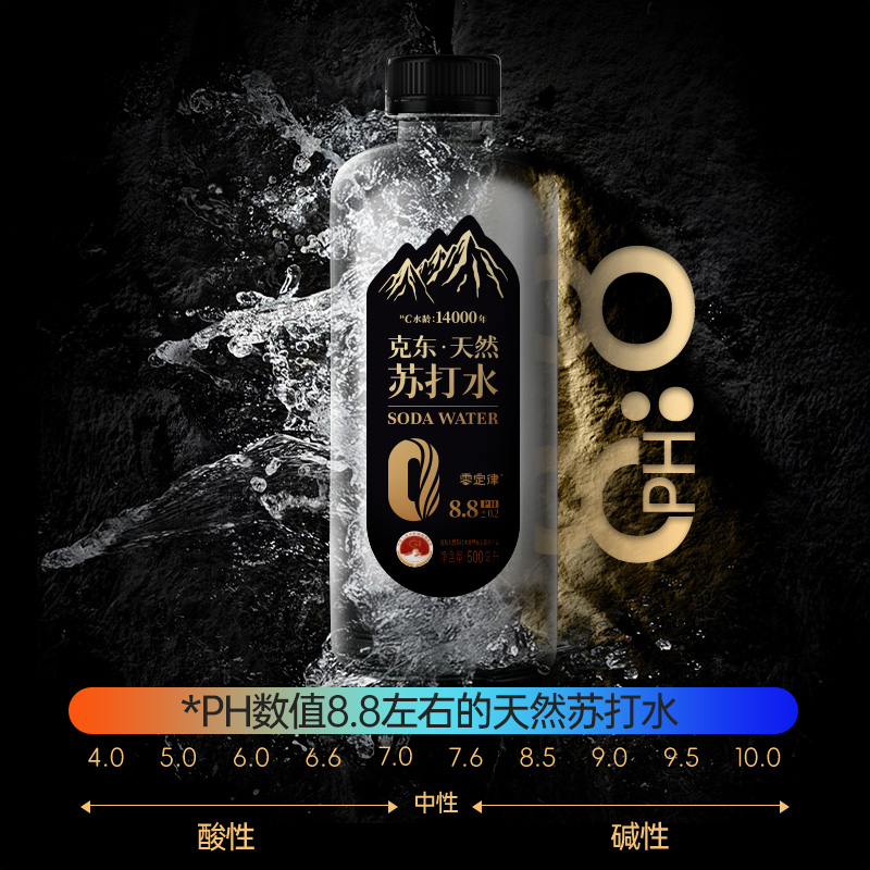 克东天然苏打水碱性PH8.8天然饮用水旗舰店高端矿泉饮料整箱24瓶