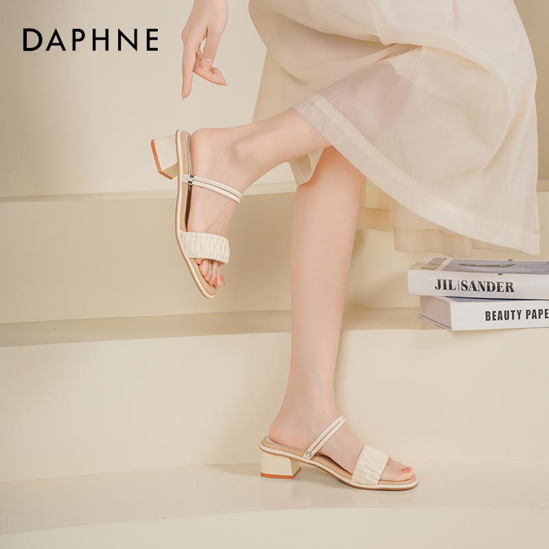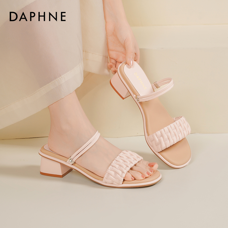 女外穿夏一字带两穿拖鞋 达芙妮凉鞋 粗高跟凉拖鞋 2025新款 女款