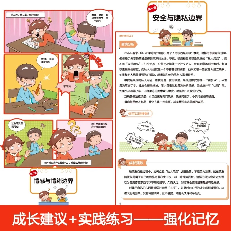 漫画儿童边界感正版 绘本适合小学生看 书籍 社会能力三观社交心理学教育高情商启蒙书漫画版 漫画书 如何培养孩子 抖音同款