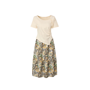 女2025年新款 海青蓝 套装 上衣夏季 碎花半身裙两件套 设计感短袖