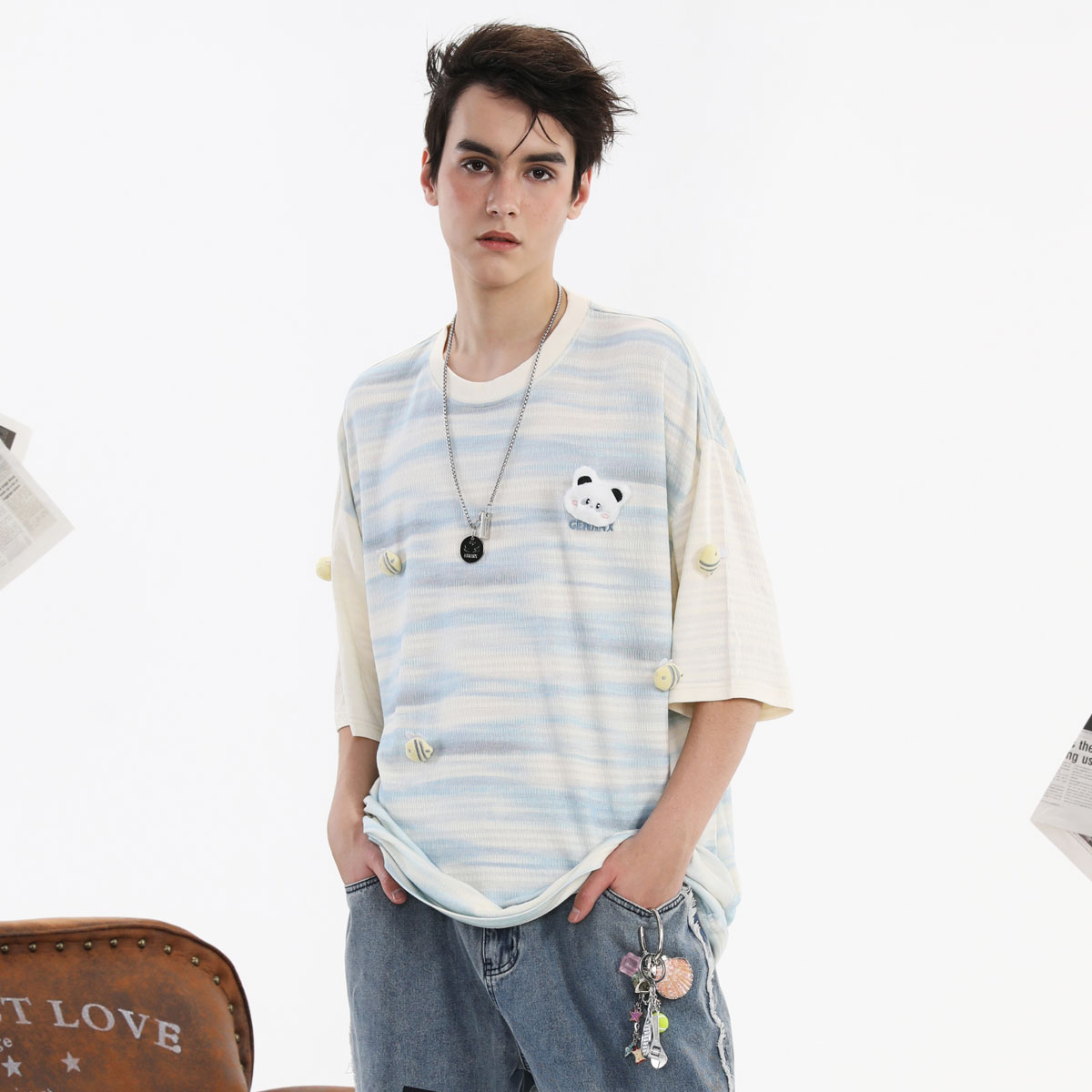T恤 针织渐变色条纹别致男女圣代同款 GENANX闪电潮牌2025夏季 短袖