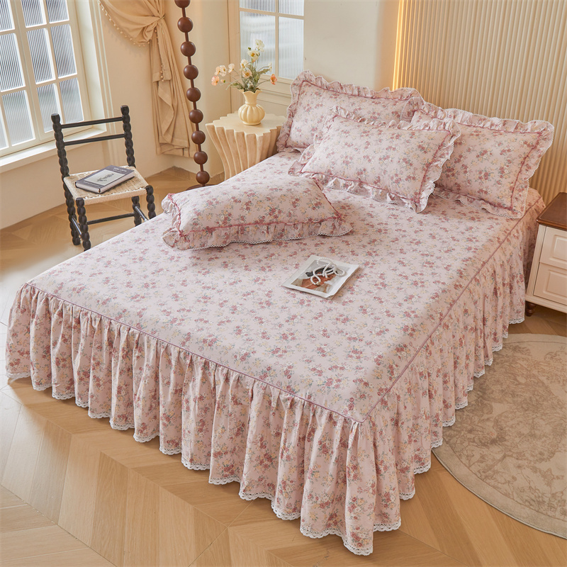 新款 印花公主风床裙套件纯棉公主风花边床罩床单四件套夏 全棉韩版
