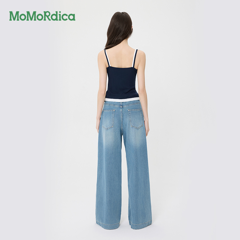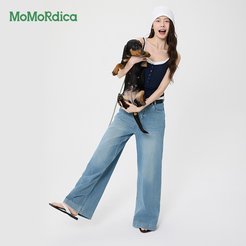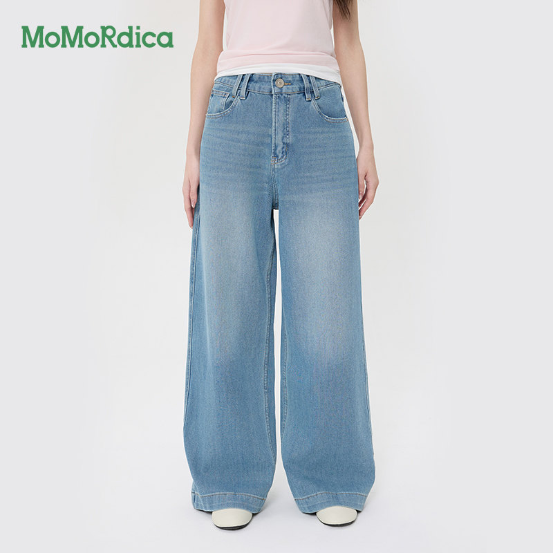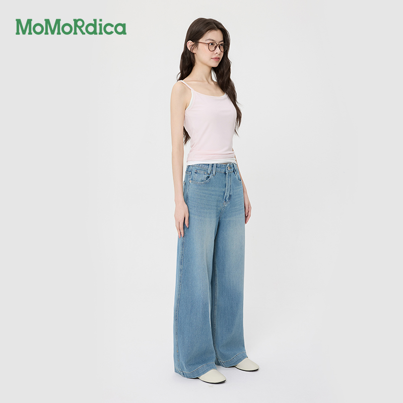 高腰直筒裤 Momordica2025夏季 莱赛尔微弹阔腿裤 牛仔长裤 休闲 新款