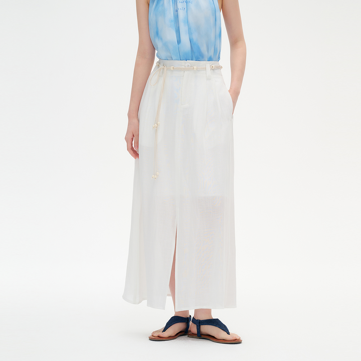 时尚 飞鸟和新酒高腰半身裙2025夏新款 天丝亚麻半裙腰裙 莱赛尔
