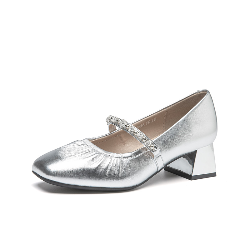 浅口女单鞋 高跟鞋 W0753CQ5 珍珠钻带玛丽珍鞋 百思图2025秋商场新款