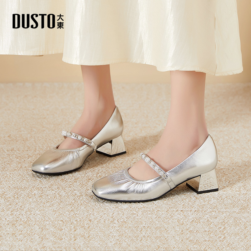 2025秋季 小皮鞋 新款 千金珍珠高跟鞋 绝美浅口单鞋 达芙妮玛丽珍女鞋