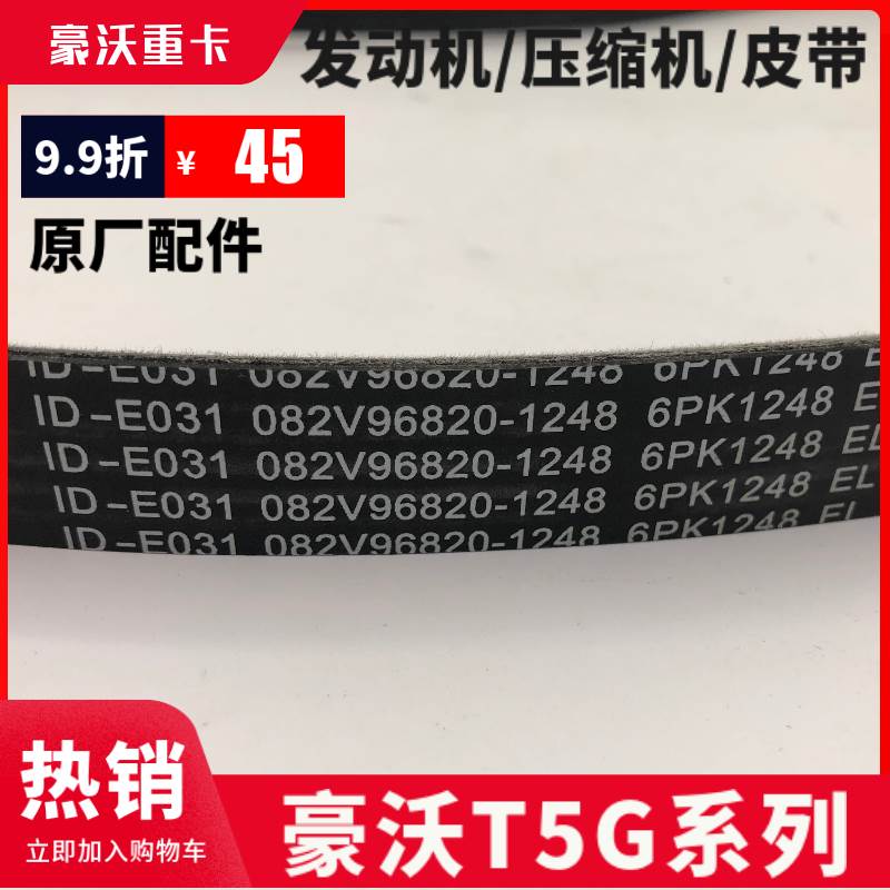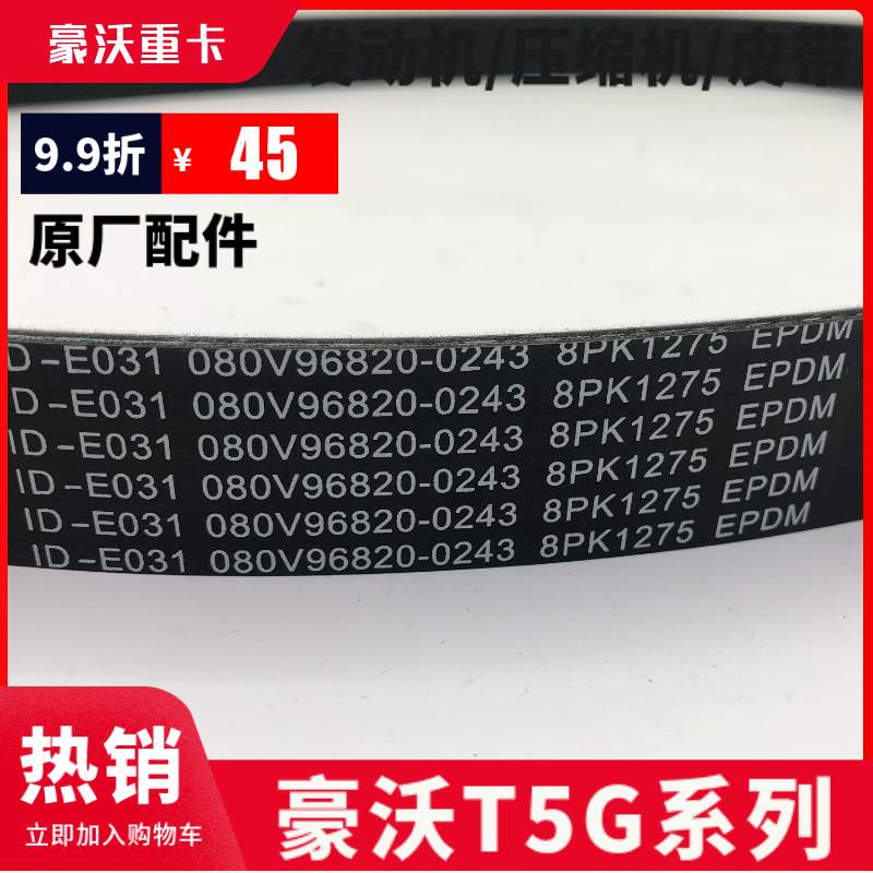 适配重汽豪沃T5G发动机皮带TX压缩机皮带涨紧轮带豪瀚发动机皮带
