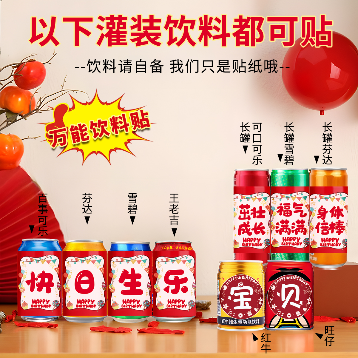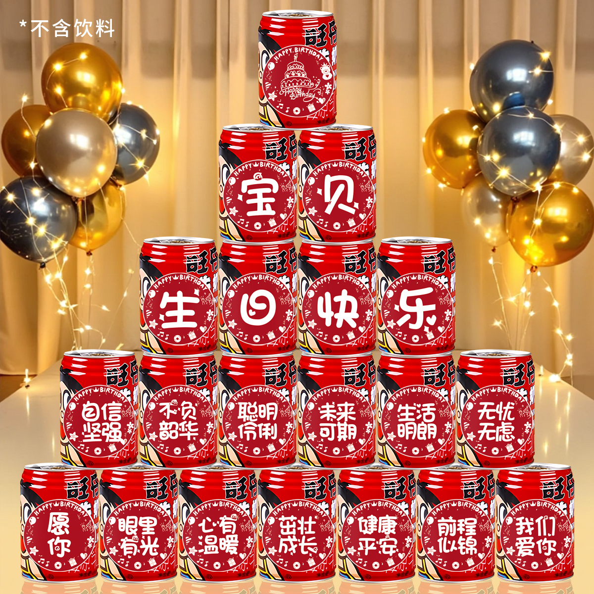 生日快乐旺仔可乐饮料贴纸周岁男女宝宝宴易拉罐装 场景布置 饰仪式