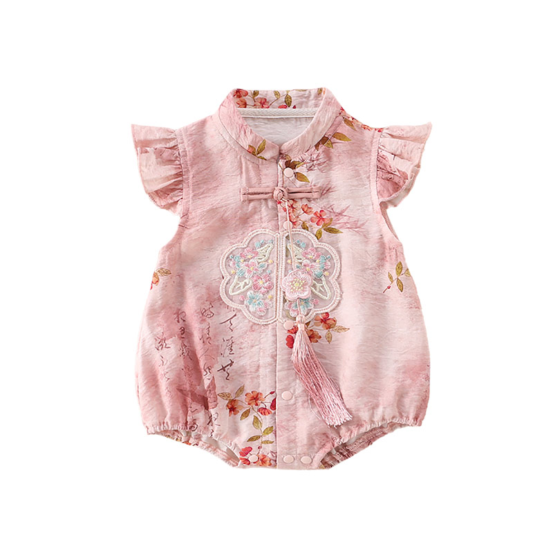女宝宝满月百天周岁古风礼服包屁衣 薄款 kmi新中式 婴儿连体衣夏季