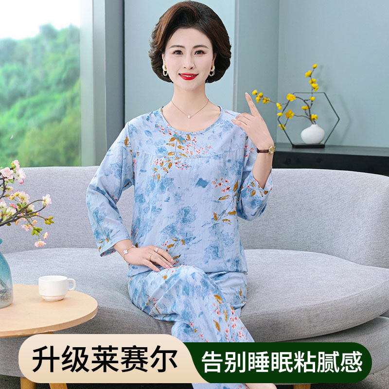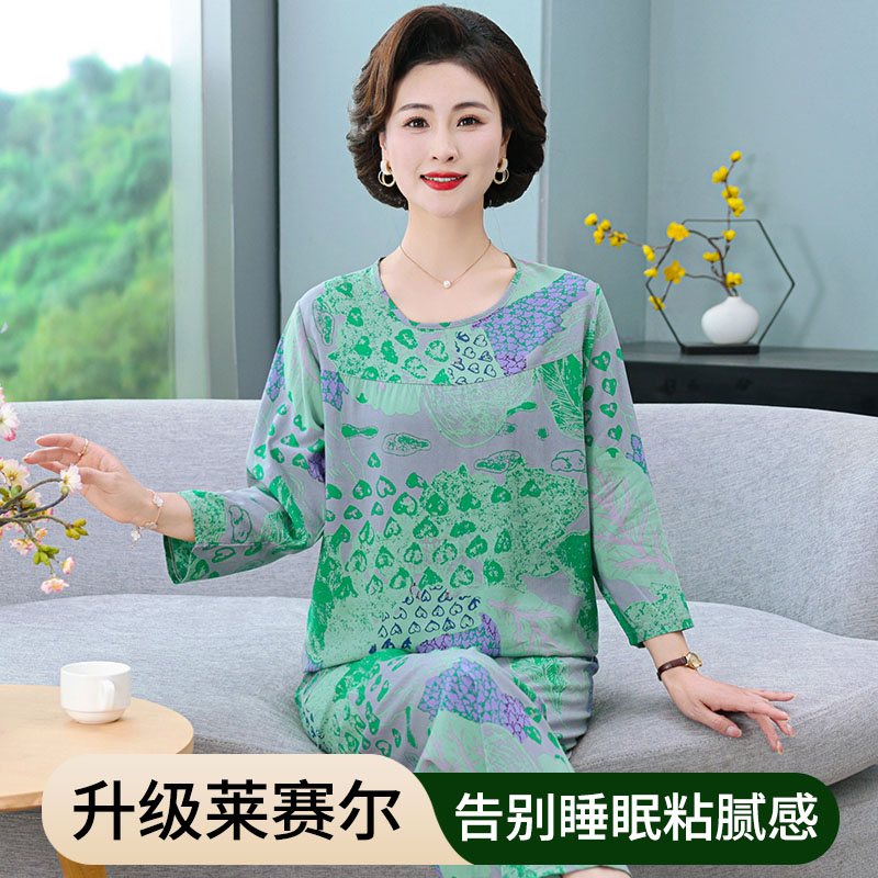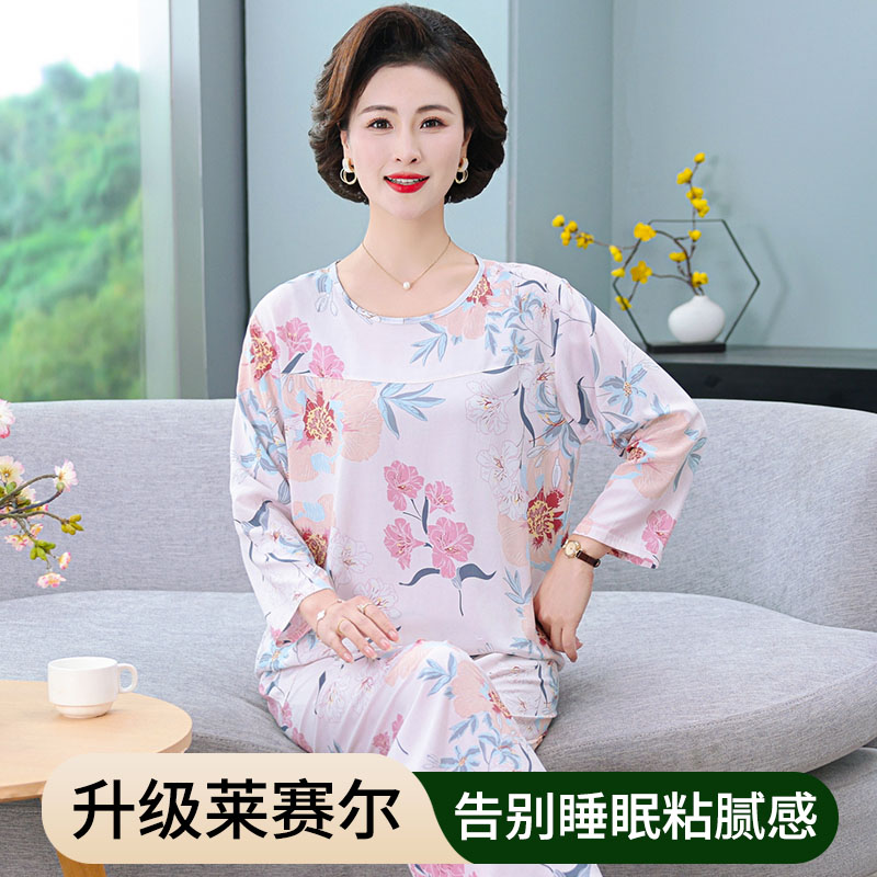 中老年人夏季 妈妈棉绸睡衣女款 套装 春秋可外穿家居服长袖 2025新款