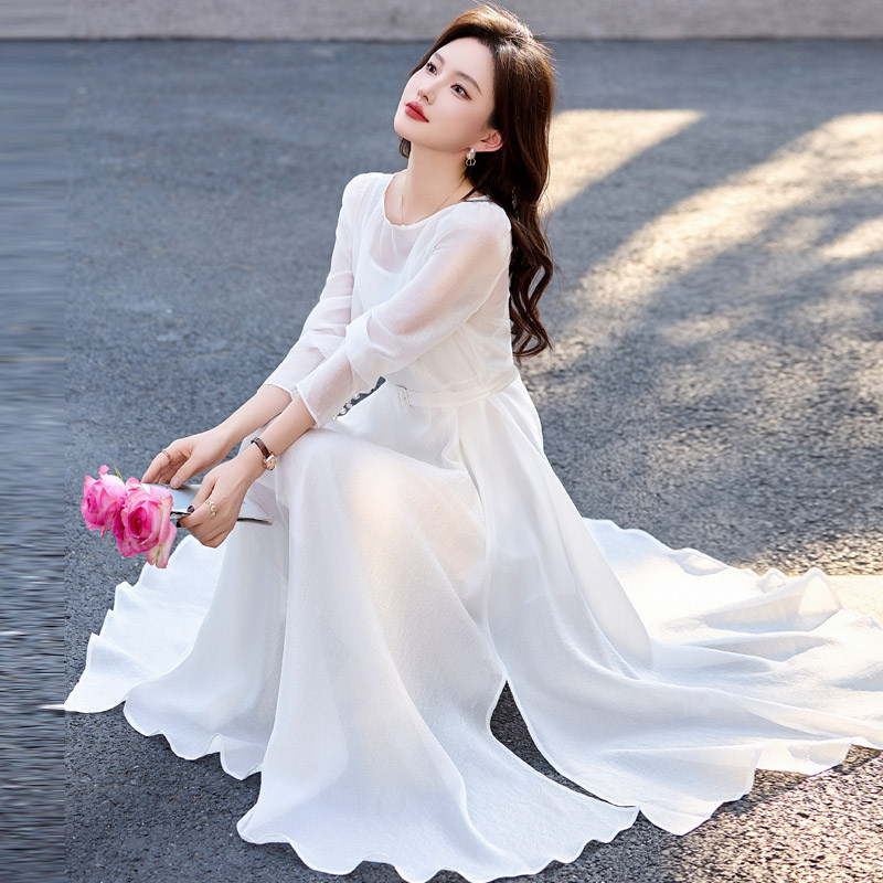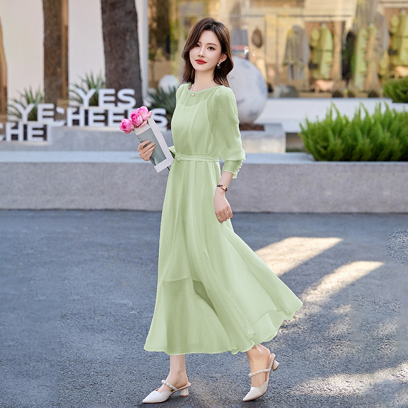 32537A038 层叠裙摆拼接收腰中长裙轻熟法式 Vero Moda连衣裙25秋季