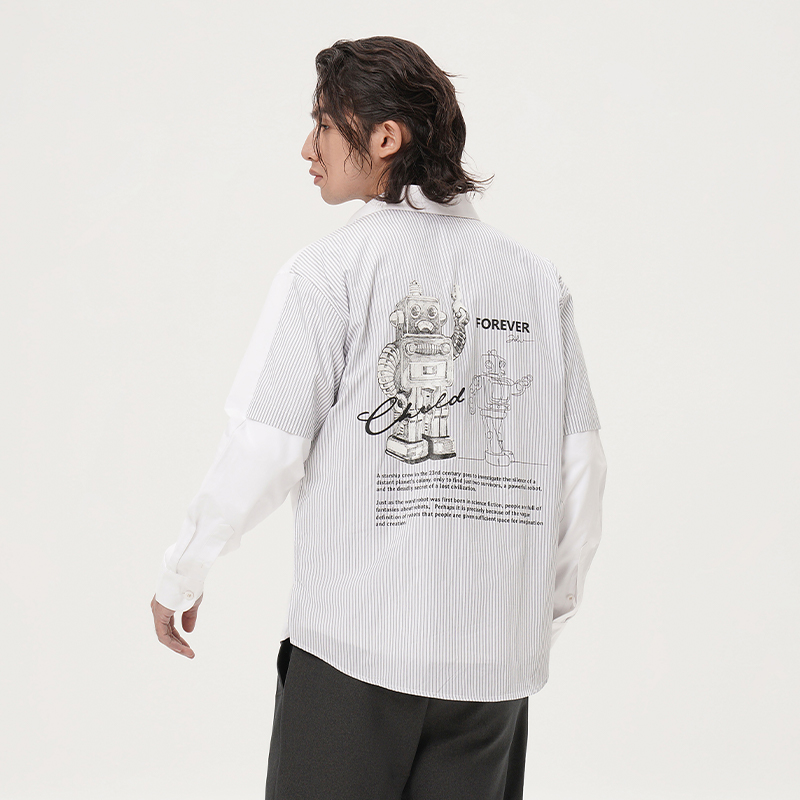 百搭休闲翻领衬衣外套 男秋季 日系潮牌vintage少年感长袖 条纹衬衫