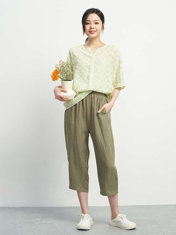棉麻休闲七分裤 UGIZ2024年夏季 韩版 商场同款 女UBPH336 新品