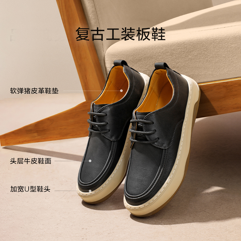 鞋 夏新户外工装 A1611CM4 弹簧缓震舒适厚底坚果派板鞋 百丽男鞋