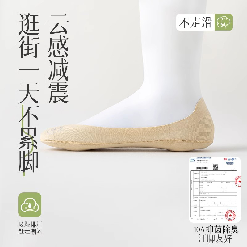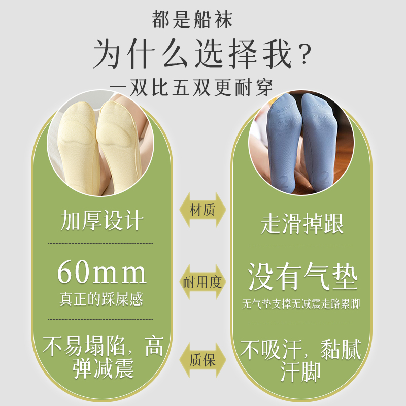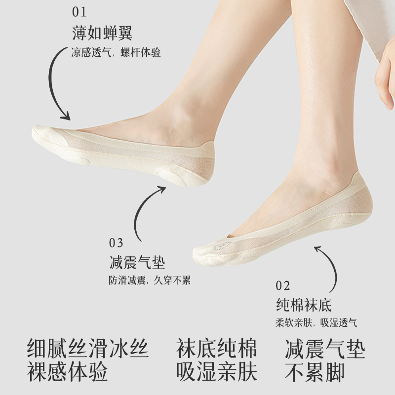单鞋 防滑不掉跟防震气垫底纯棉隐形浅口高跟鞋 袜子 薄款 船袜女夏季