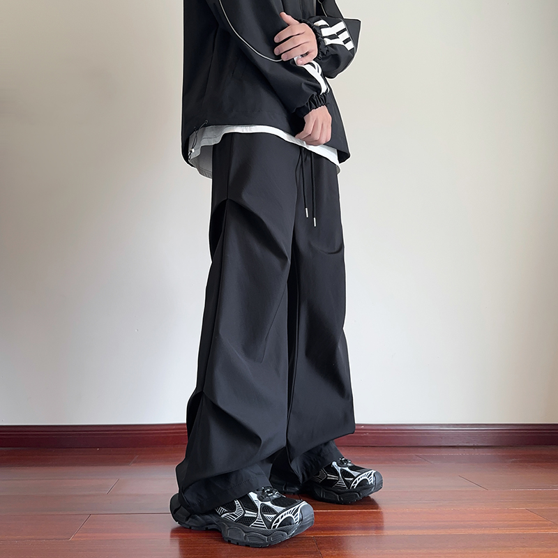 女春秋新款 休闲直筒慵懒松弛感裤 高腰垂感窄版 裤 子 西装 黑色阔腿裤