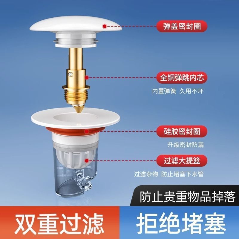 洗手盆下水器面盆弹跳芯洗脸盆漏水塞防臭按压式 配件陶瓷下水管