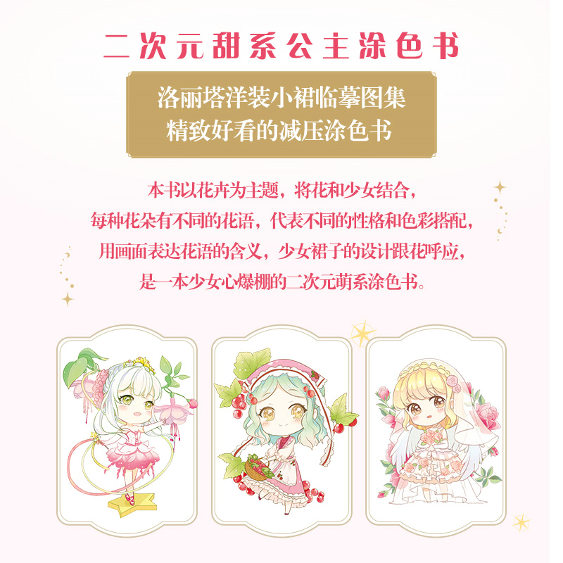 公主秘密花园涂色书萌系花少女漫画线稿儿童涂鸦成人大人减压涂色二次元 动漫线稿手绘涂色集 花与萌娘 卡通临摹书籍 书