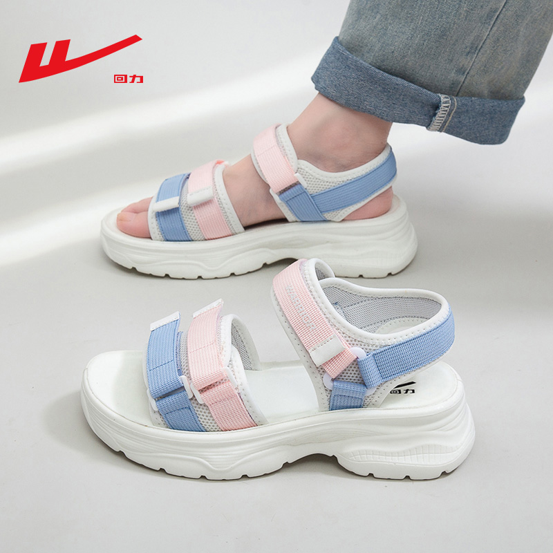 女款 魔术贴露趾凉拖鞋 2025新款 厚底外穿沙滩鞋 女 夏季 回力运动凉鞋