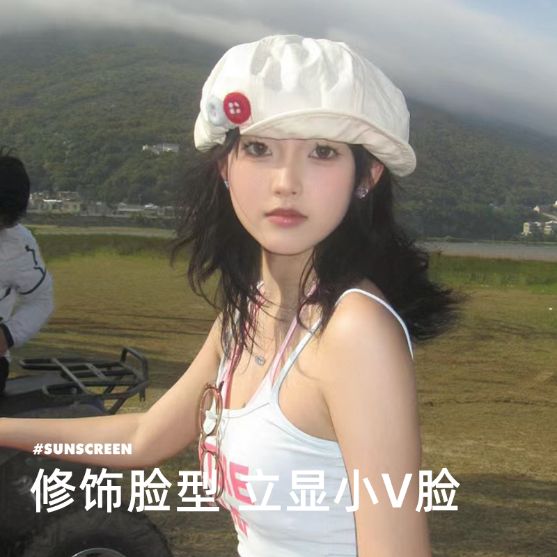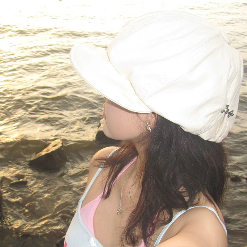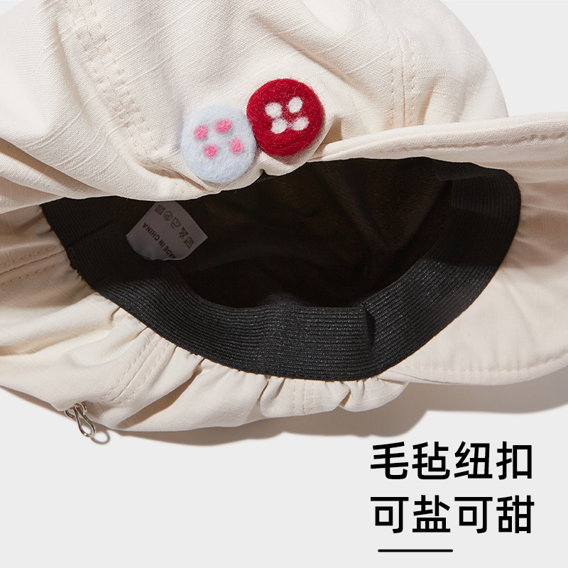 杨同学严选棉麻八角帽子女彩色毛毡纽扣不对称设计薄款 云朵画家帽