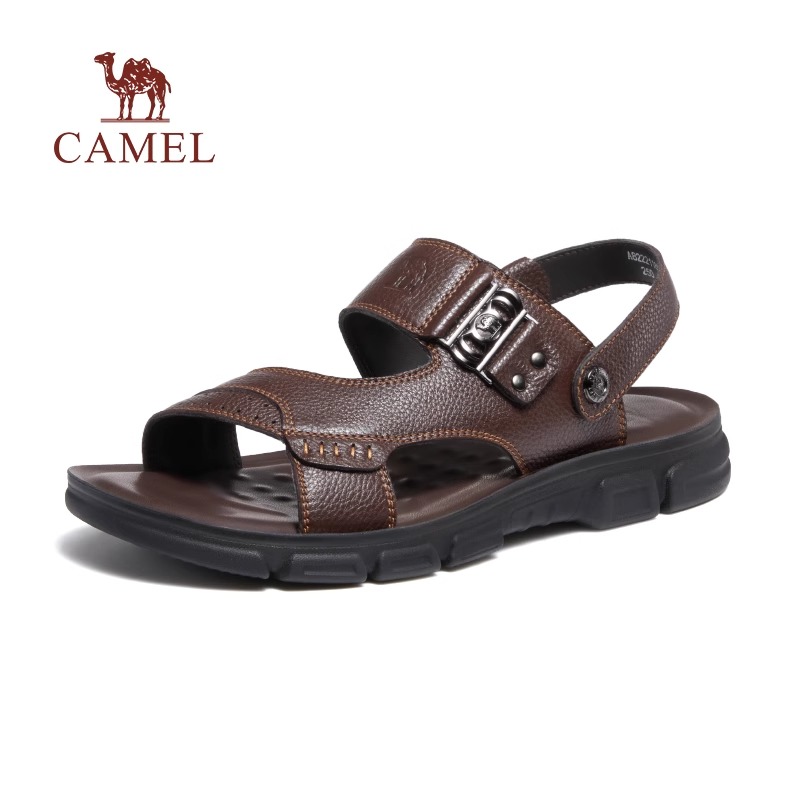 两穿舒适透气牛皮商务男沙滩鞋 真皮休闲凉拖鞋 男夏季 骆驼2025新款