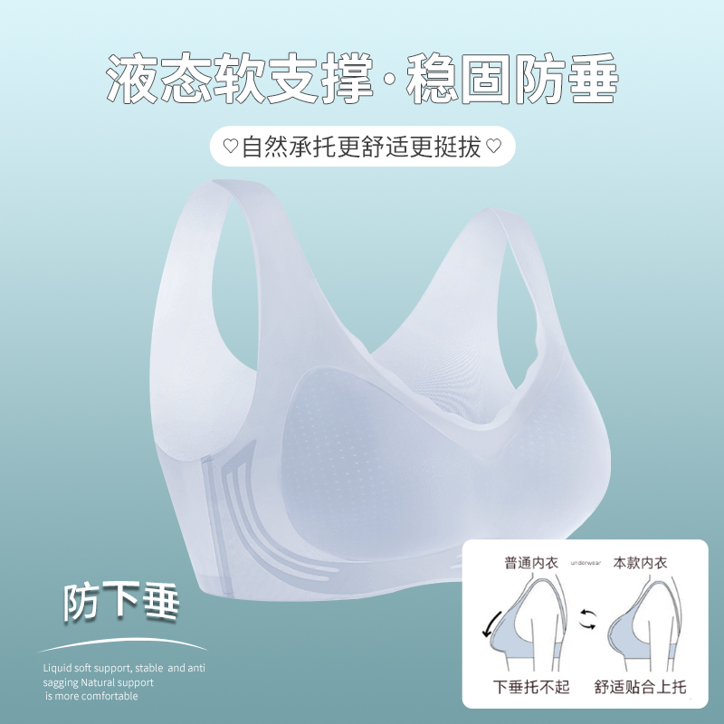 无痕内衣女薄款 超薄凉感冰丝美背文胸罩肩带 大胸显小胸聚拢软夏季