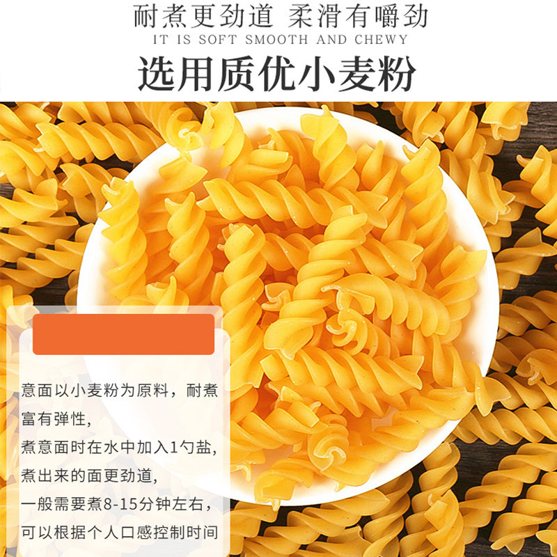 赛琳娜螺纹形意大利面500g袋装 家用面条方便速食低脂意粉螺旋意面