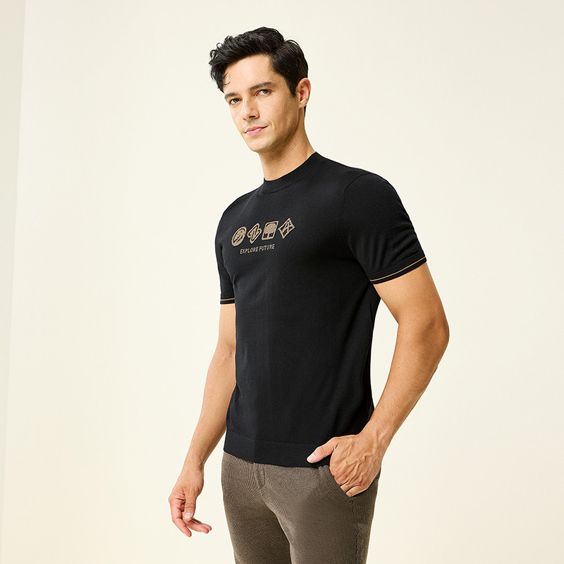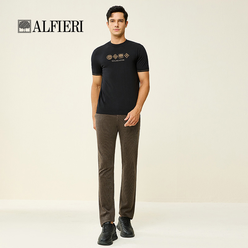 短袖 100%绵羊毛柔软舒适百搭男士 圆领T恤 24秋新款 艾法利