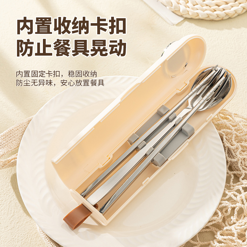 口红筷子旅行随身折叠伸缩便携餐具套装 一人用盒户外露营学生勺子