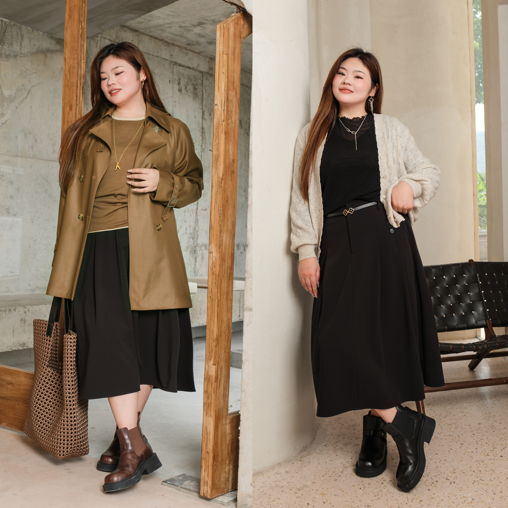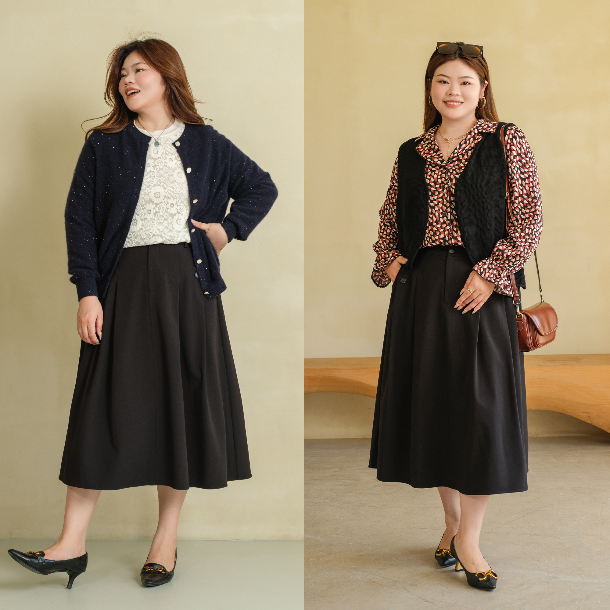 高腰梨型身材A字裙伞裙 半身裙百褶裙大码 胖mm显瘦百搭西装 中长款