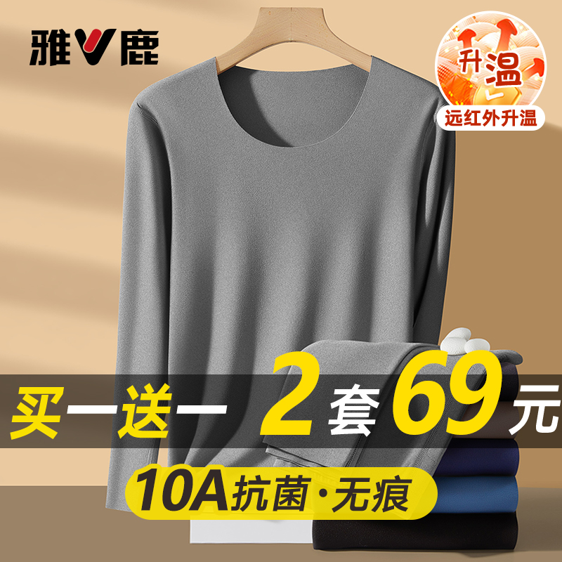 德绒羊绒发热防寒冬季 雅鹿保暖内衣男士 男款 套装 加绒加厚秋衣秋裤