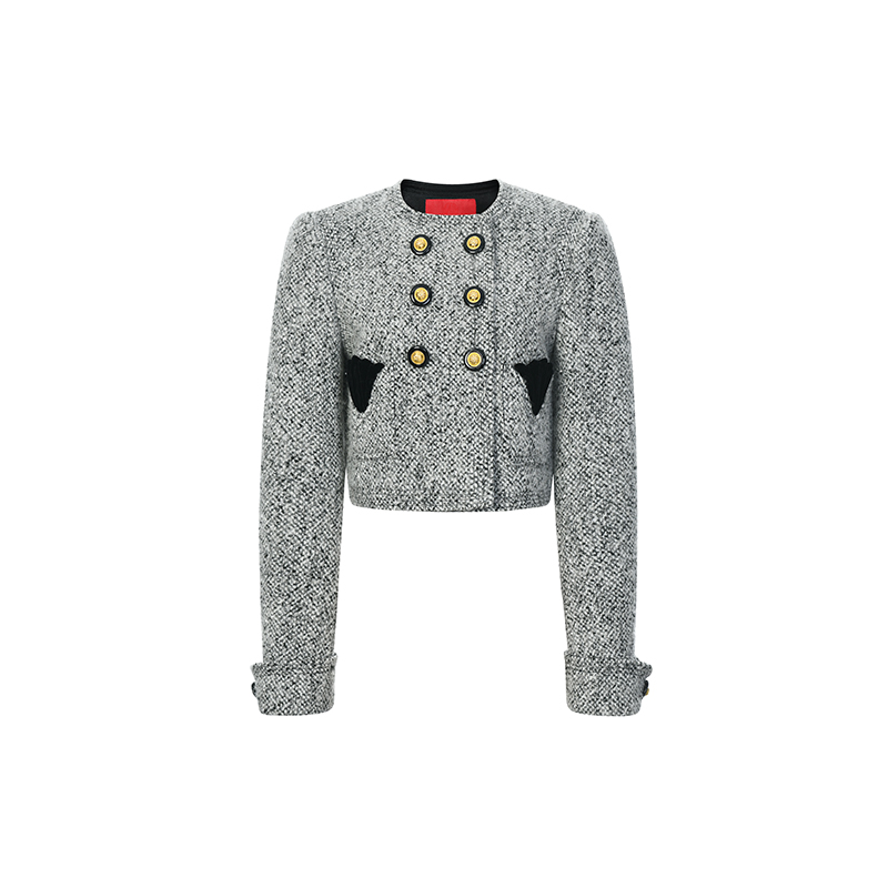 lefame拉飞姆冬季 格雷系双排扣灰色千金短外套