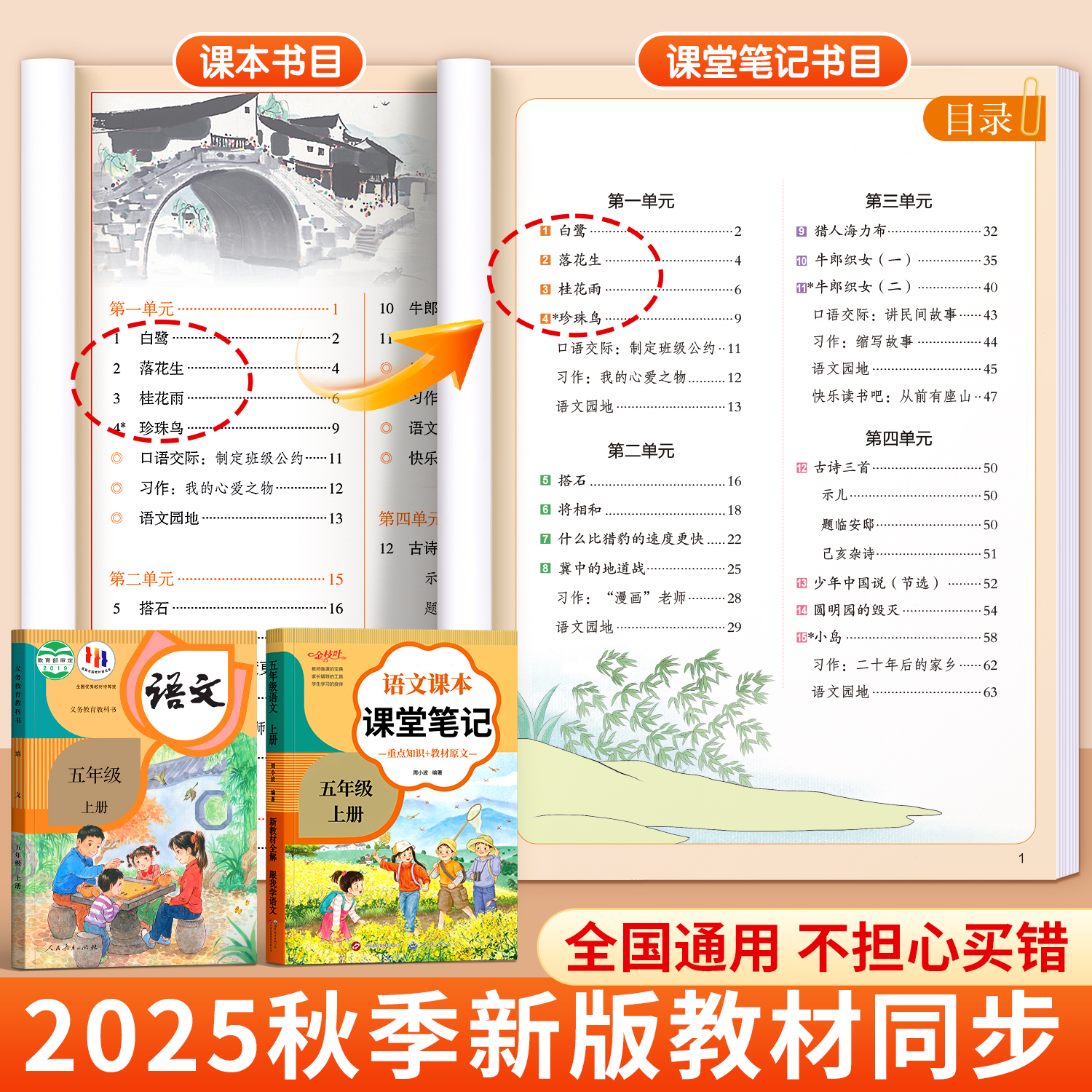 教辅下册 小学生同步练习册全套数学英语新教材随堂笔记教材解读正版 五年级上册课堂笔记教材全解2025新版 课堂笔记小学语文人教版
