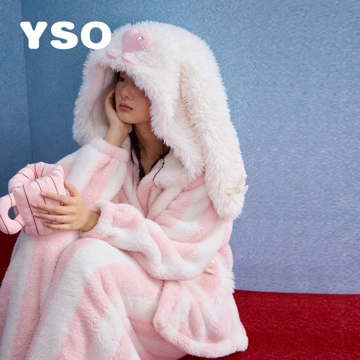 冬加厚D 睡衣女冬可爱兔子珊瑚绒连帽可外穿女套装 yso 礼物系列