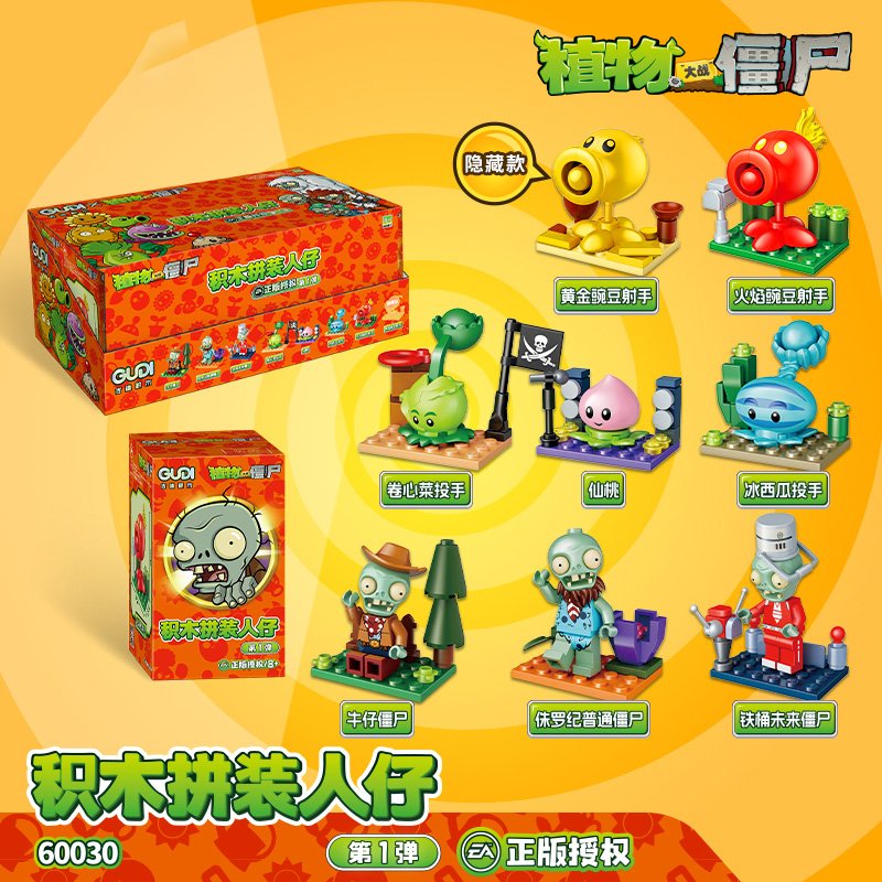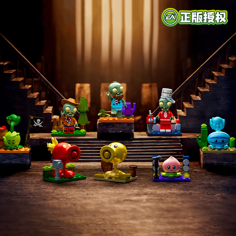 正版 积木豌豆射手男孩 植物大战僵尸2玩具盲盒可发射全套立体拼装