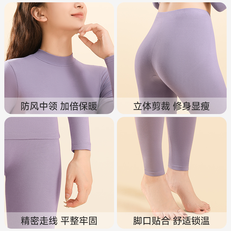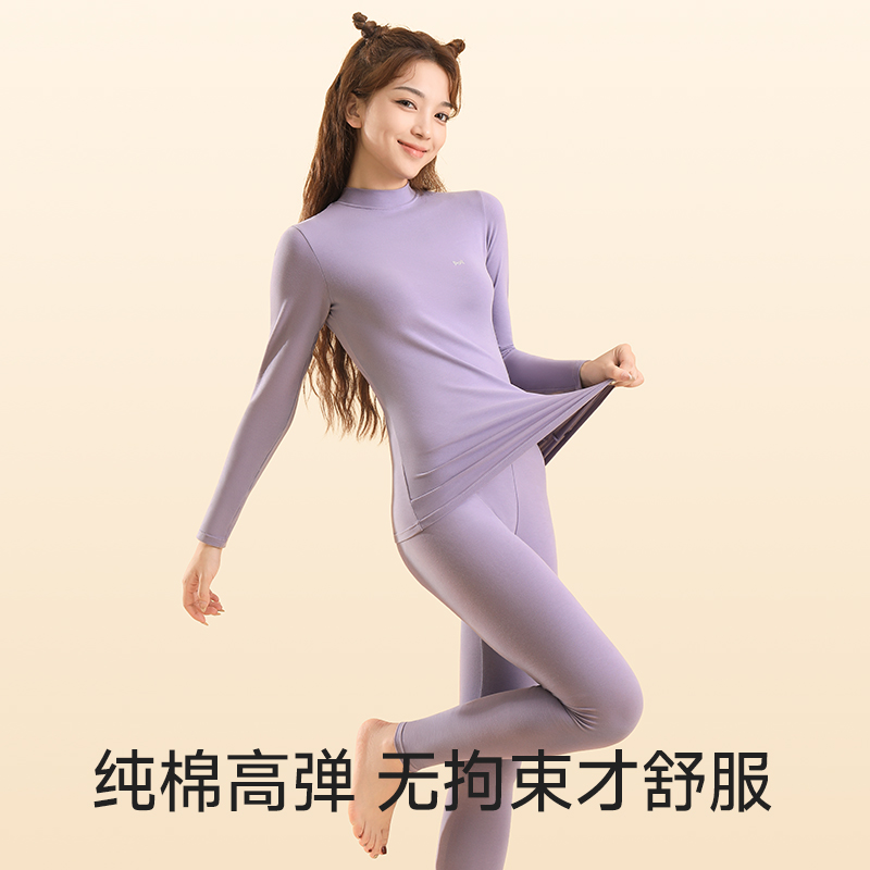 打底保暖内衣冬季 女士纯棉全棉抗菌亲肤修身 套装 猫人中领秋衣秋裤