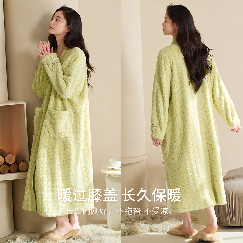 大码 保暖珊瑚绒浴袍时尚 家居服 加绒加厚款 轩靓法兰绒睡袍女士冬季